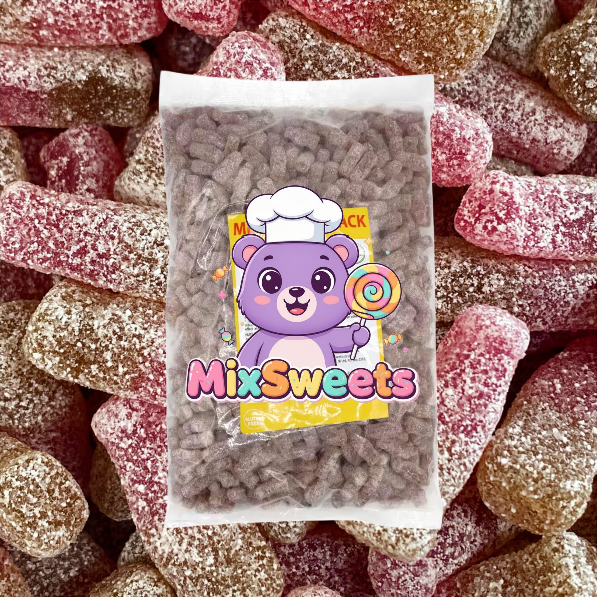Kingsway Mega Value Vegan Fizzy Cherry Cola Bottles bring together the bold taste of cherry and classic cola with a tangy fizzy sugar coating. These chewy sweets are full of fruity flavour and a fun twist on a timeless favourite. With their eye-catching bottle shape and playful fizz, they’re perfect for parties, sweet tables, or sharing with friends. Suitable for vegans, they’re a delicious treat everyone can enjoy.